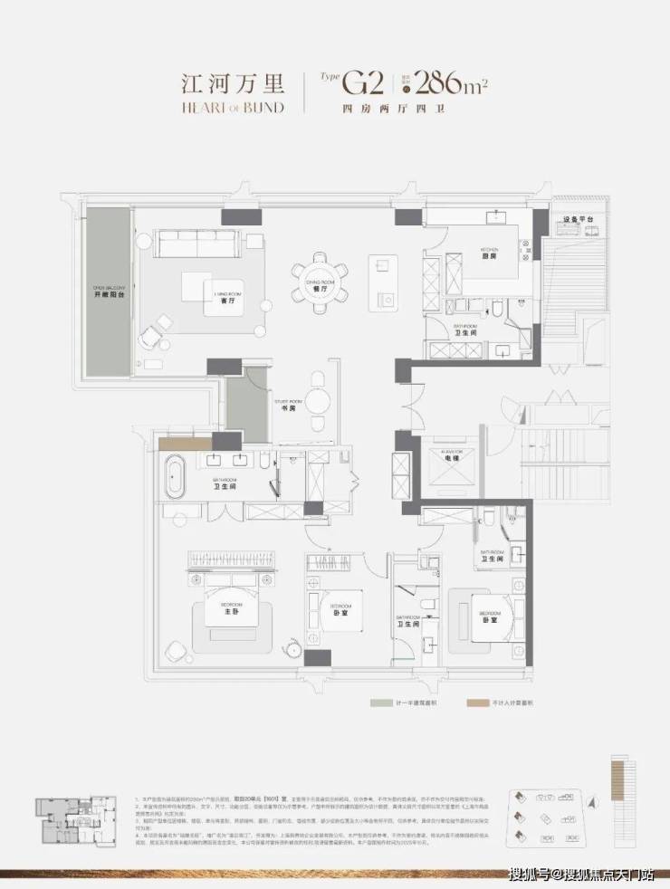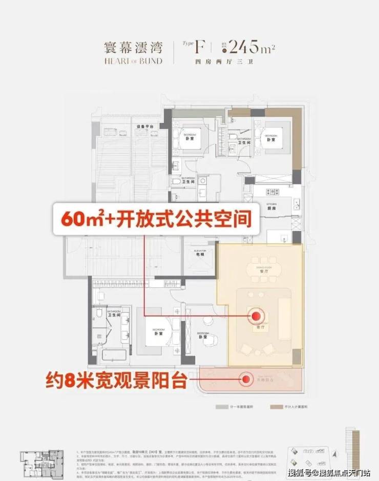 超过60平米的开放式空间(客厅、餐厅、X空间、阳台一体化),功能灵活,可满足大型派对或家庭休闲,尺度感直接媲美原来350㎡的滨江户型!