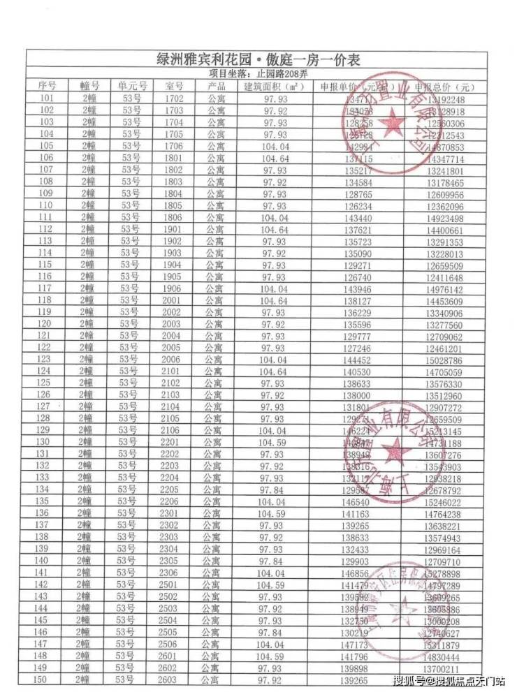 一房一价表发布