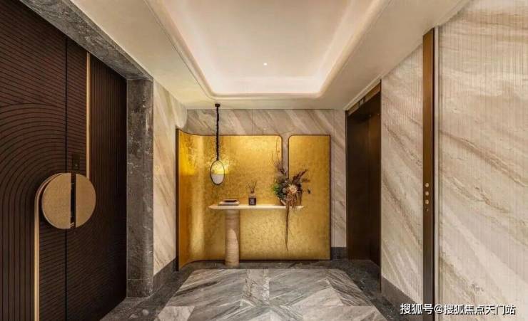 比如,弧形、奢石与灯光等相得益彰且设计感满满的架空层。