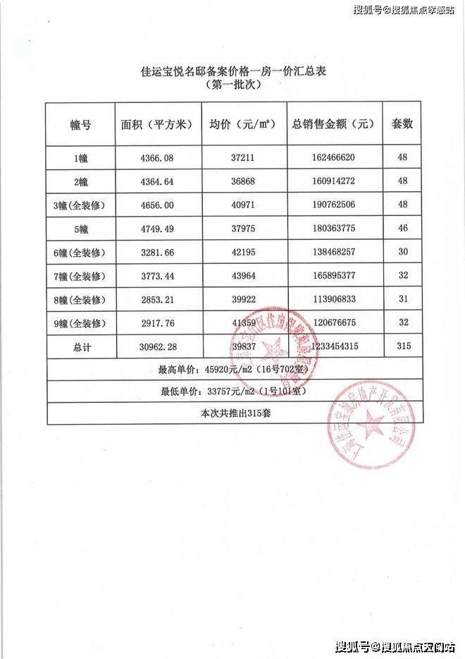 一房一价表: