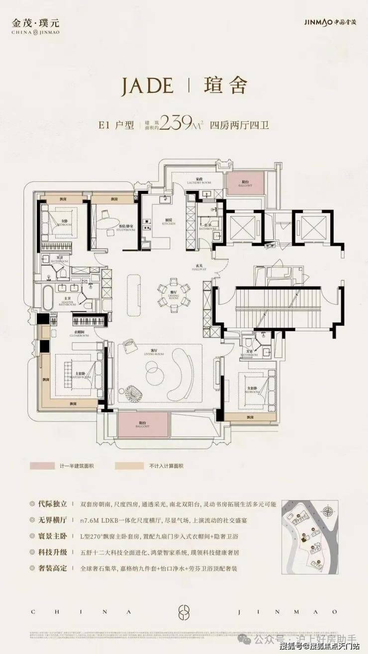 在建面约172㎡户型中,我们可以看到金茂对“三代同堂”生活方式的深刻理解!