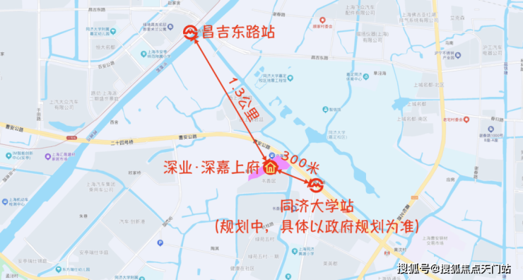 交通方面,深嘉上府距离11号线昌吉东路站直线距离约1.3公里,距离规划中的地铁14号线西延伸线同济大学站直线约300米,沿着曹安公路5分钟可以上京沪高速,从而快速通向市区。