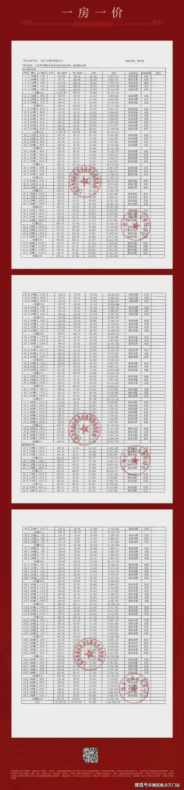 项目一房一价表▼