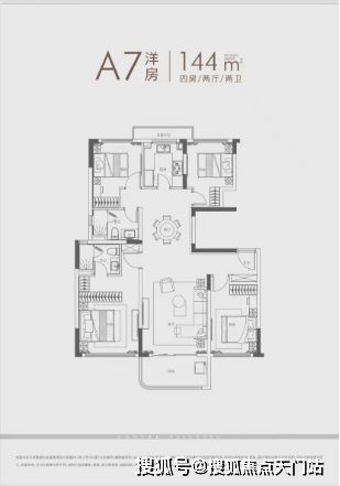四房间呈四叶草布局分布于户型四角,互不打扰;