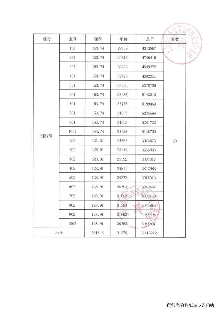 项目一房一价表