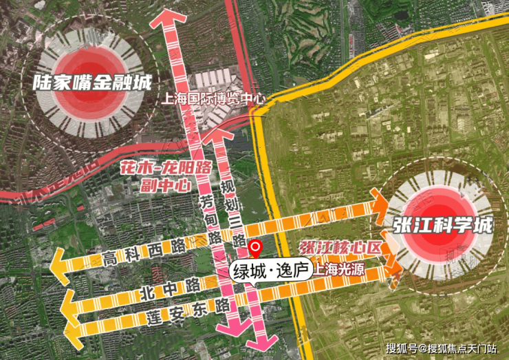 同时项目南侧的北中路和莲安路都可以通达东西(联通成山路直达世博),向西直通上海光源所在的张江核心区。