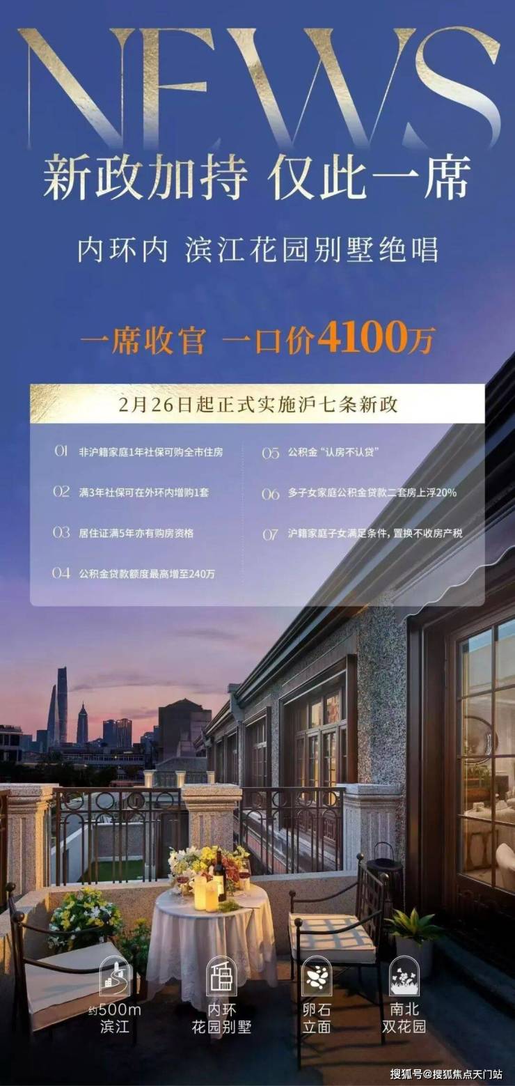 滨江唯一性:内环内,约500m黄浦滨江实现墅居生活,据统计,500m亲水别墅仅65席,外滩序独占38席。
