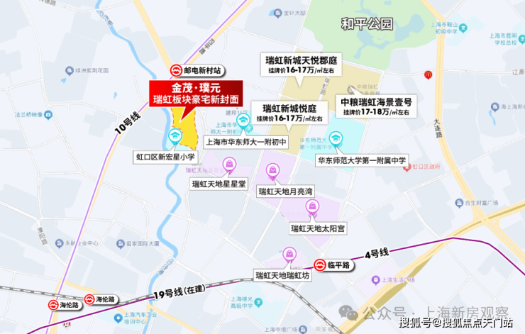 再看二手房, 瑞虹新城板块次新房挂牌均价在10-18万/㎡不等,整体上越新的房子越贵,比如瑞虹6789期目前挂牌普遍在15-18万/㎡。