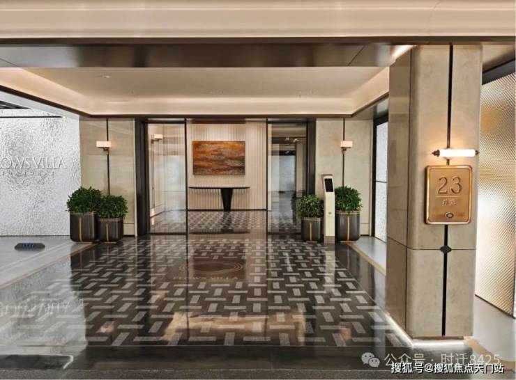 首先是小区 南侧的次入口, 进门第一个最吸引人的地方就是玉石照壁,75片珍贵的玉石用金属拼接起来,寓意着 「金玉满堂」。