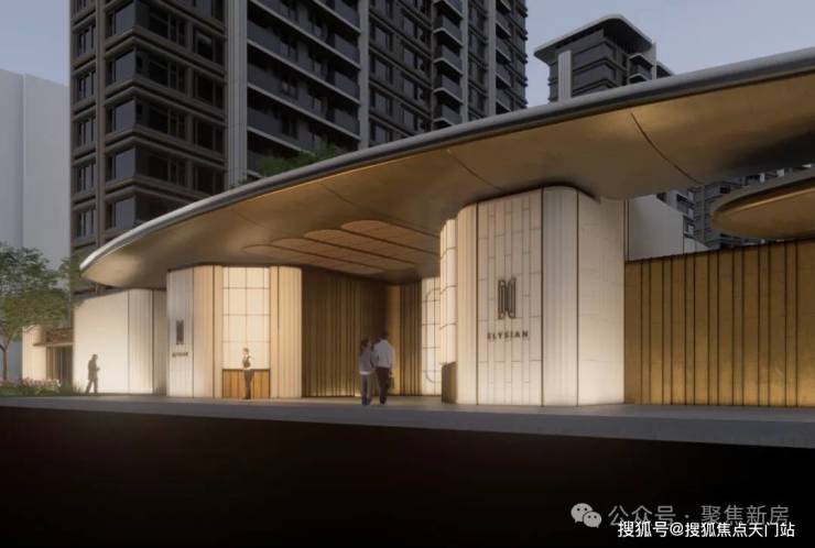 蓝灰色玻璃+仿石铝板+艺术涂料 材质,穿插优雅线条,让建筑这张“脸”看起来更高级。 One&Only酒店式门头 。用 雕塑体块、温润弧面和雅致线条 ,营造具有艺术格调的归家仪式感。