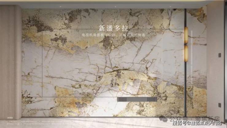 充分考虑业主的个性化需求,在电视背景板提供了 新潘多拉、云中翡翠、弗朗明戈金 三种结晶釉面岩板选择,成本更高,施工难度也更大。