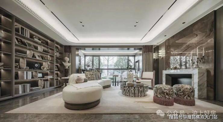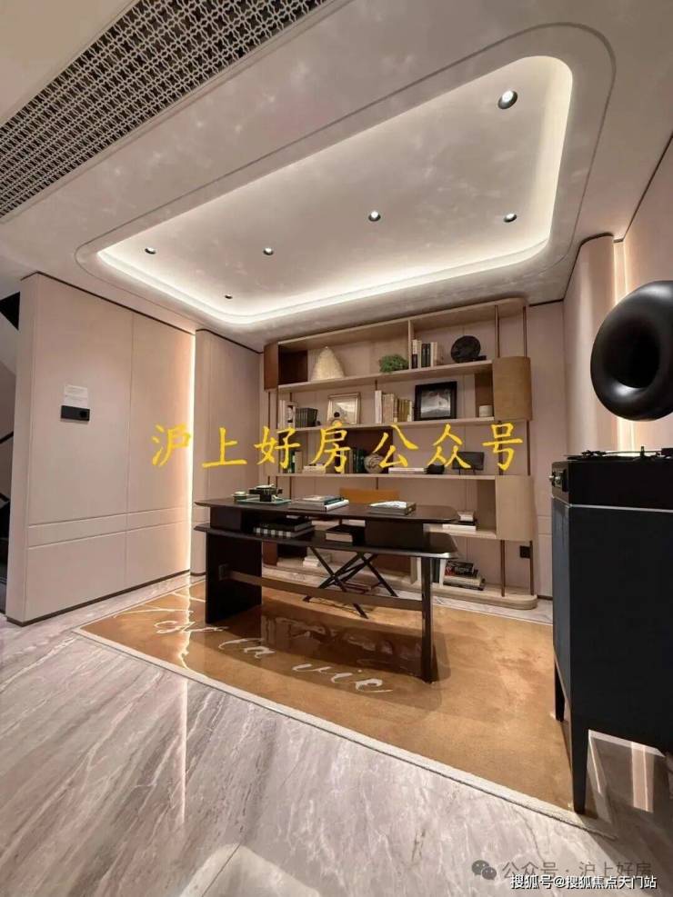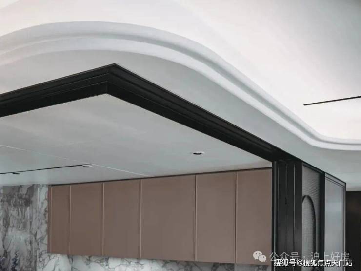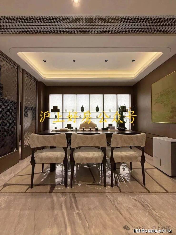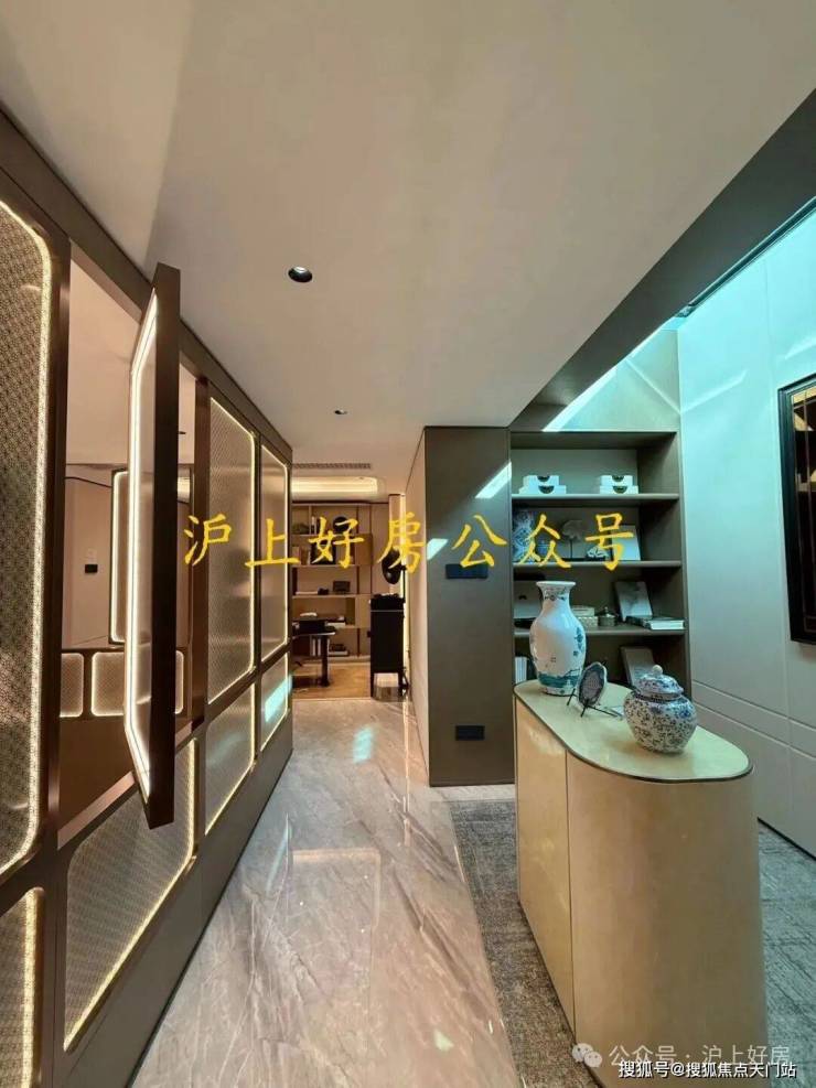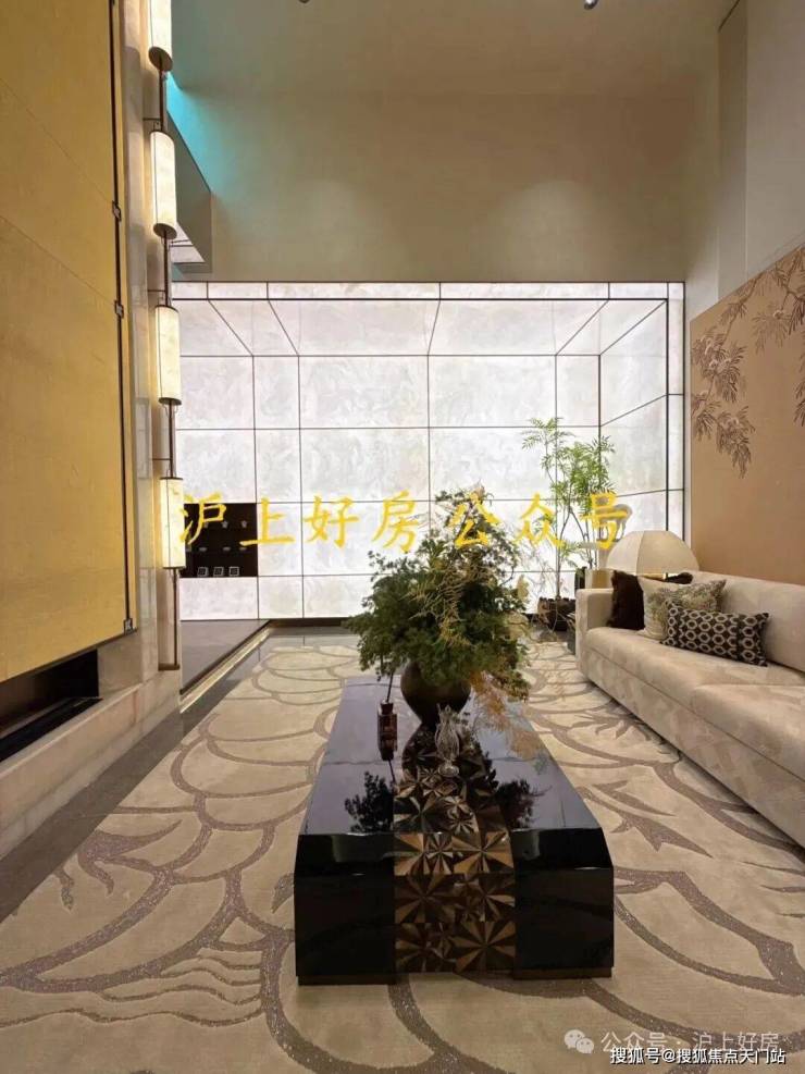 首先是奢石含量极高,从入户处的玲珑玉拼花与透光云石辉映,到翡翠绿奢石墙景、再到发光云石装饰点亮归家路,石材的典雅贯穿始终。
