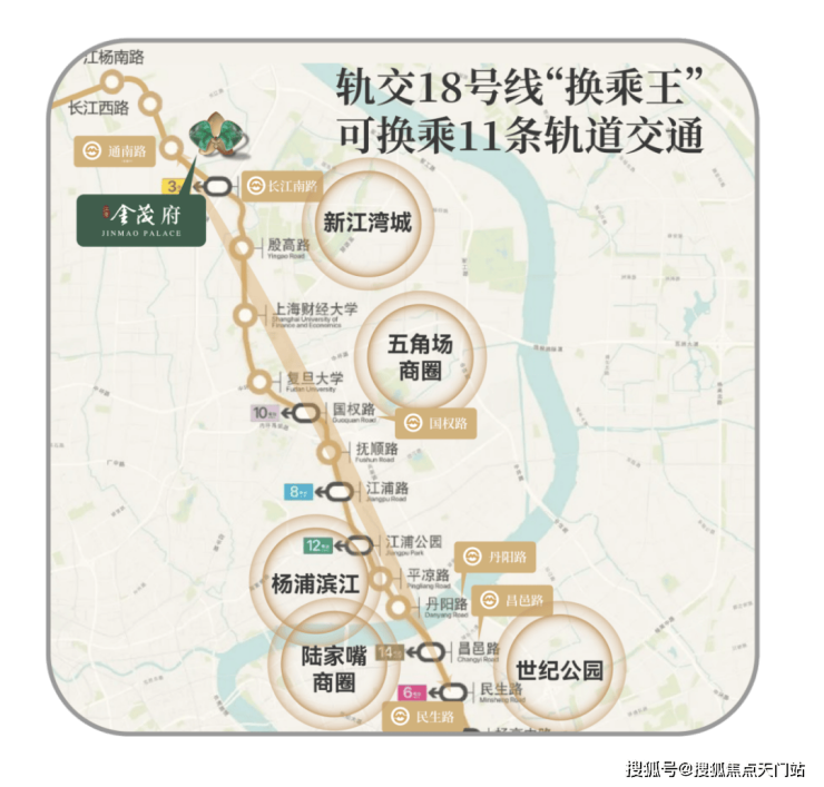 一方面是18号线“含金量”很高,3站财大,4站复旦,并经过杨浦滨江、陆家嘴等CBD,是科创、教育、金融产业高度集中的一条轨交线,而且18号线二期今年底即通车——在江湾金茂府交房前就能通车,大大缩减“需要等”的时间。