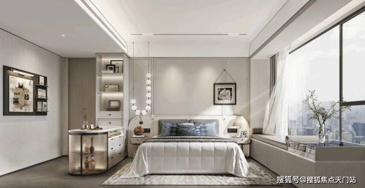 主卧270°无柱转角飘窗,实现室内外景观无缝衔接;