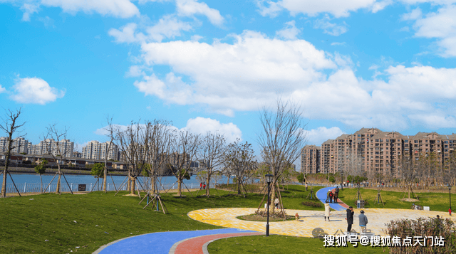 占位上:整个社区的北侧与东侧双面环水、西侧是商业,不止有繁华的城市街景,更有滨水风光,光这个社区的占位和天赋,就已经足够出色。