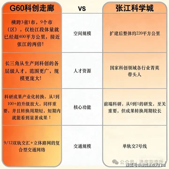 单论产业,G60科创走廊的高度是国家级战略,它的未来发展有着不输于张江的底气,来看直观对比: