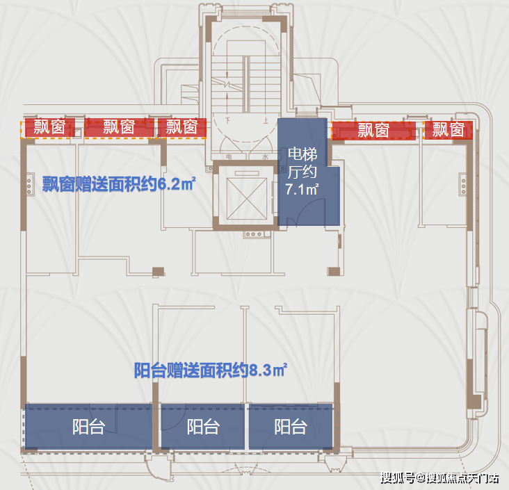 三阳台五飘窗 ,整体的赠送面积达到了约14.5㎡,相当于 赠送了一整间卧室 ;