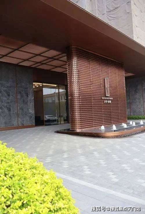 外立面采用铝板+真石漆+玻璃幕墙三段式设计,雨水槽隐藏式处理;单元门厅层高约4.2米,地面铺装天然石材;电梯轿厢配备紫外线消毒系统。