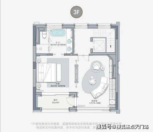 户内楼面高度不一致,错开之处有楼梯联系。但没有完全分为两层。(适合大面积住宅,小户型会显得局促)
