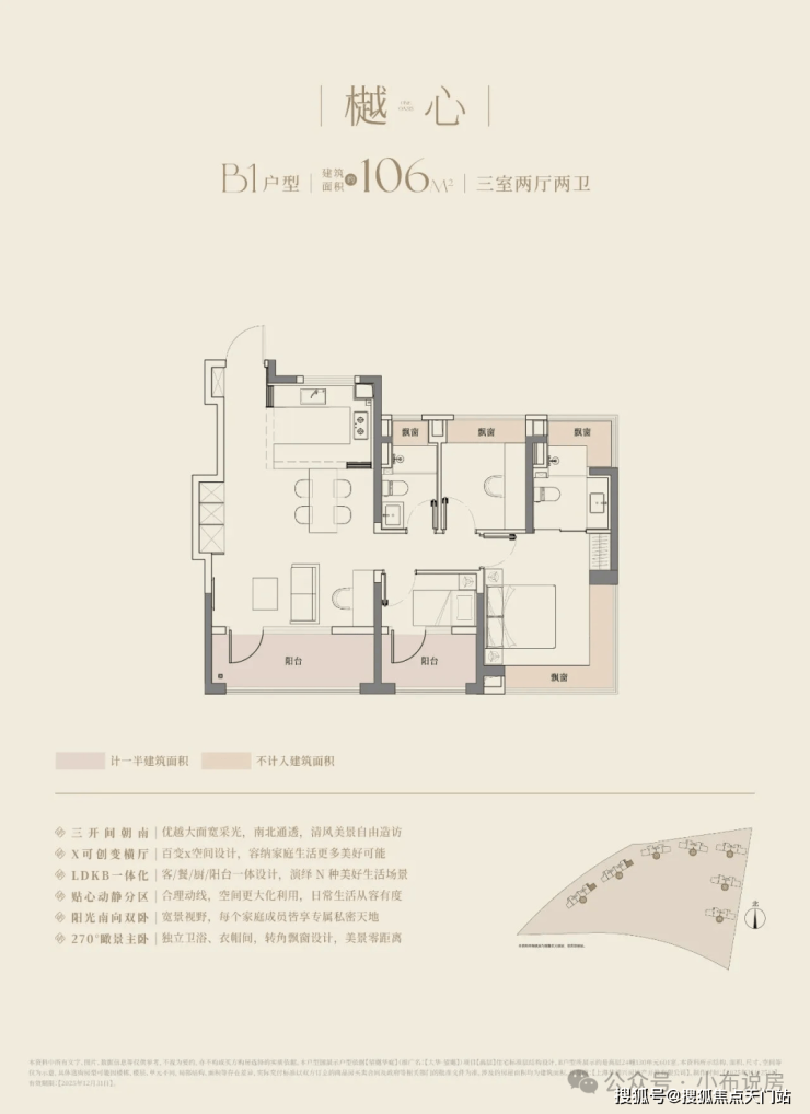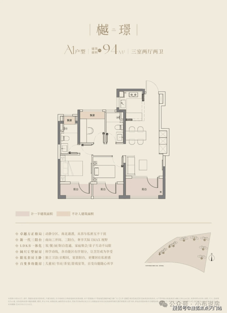 建筑面积约94-126㎡的全能尺度,全户型三开间三阳台配置,可以满足所有阶段家庭的空间需求。