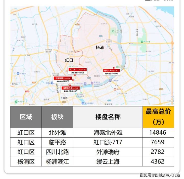 虹口/杨浦,海泰北外滩总价遥遥领先;杨浦滨江论总价圈层,缦云上海是第一梯队的;