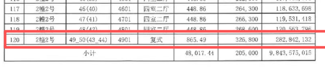 摘选自金陵华庭二批次一房一价表