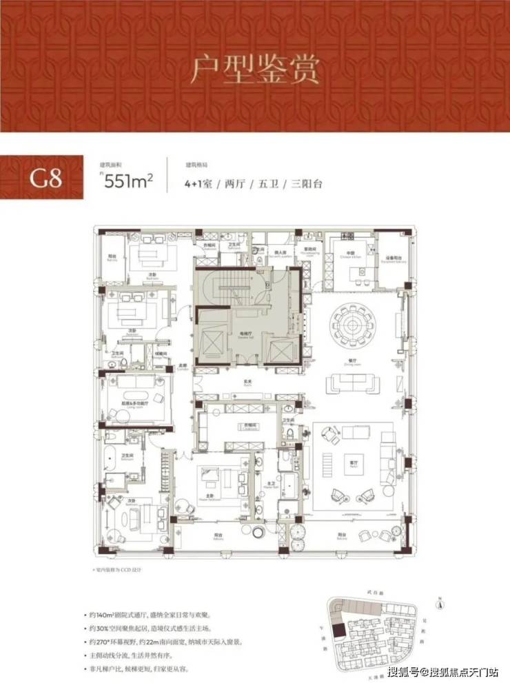 科学规划生活动线,将约30%空间聚焦起居核心,七大功能分区精准布局,兼顾使用效率与舒适质感,彰显高端生活格调。