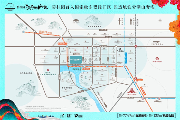 项目被南宁北八景环绕,北面是5A级旅游度假示范区龙象优质世界。东面,政府沿着里建大道主干道,打造十里画廊水系工程,生态优美、风景秀丽