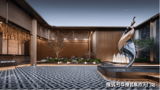 通过对仪式景墙、跌水、雕塑小品、归家廊道的美学定制,转译成独属于静安玺樾的艺术形态语言。