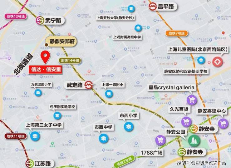 交通配套方面:项目还有着高效的出行系统,增强了通达性。 13、14号线都步行可达,武宁路站和武定路站都步行约500米左右。1公里范围内,地铁线路就更丰富了,2号线、7号线的昌平路、隆德路、江苏路、静安寺等市中心地铁站都可步行到达。