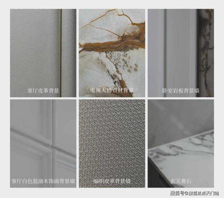 背景墙比别人更多一点。天然石材的电视背景墙,高级大气;编织皮革的客厅背景墙,充满质感;过度用的是白色木饰纹的背景墙,简约耐看;餐厅处又是白色皮革背景墙,大方优雅。整个空间过渡自然,增加了层次感和高级感。