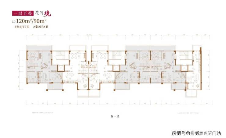 建面约120㎡3房2厅2卫/90㎡2房2厅2卫(一层下叠):