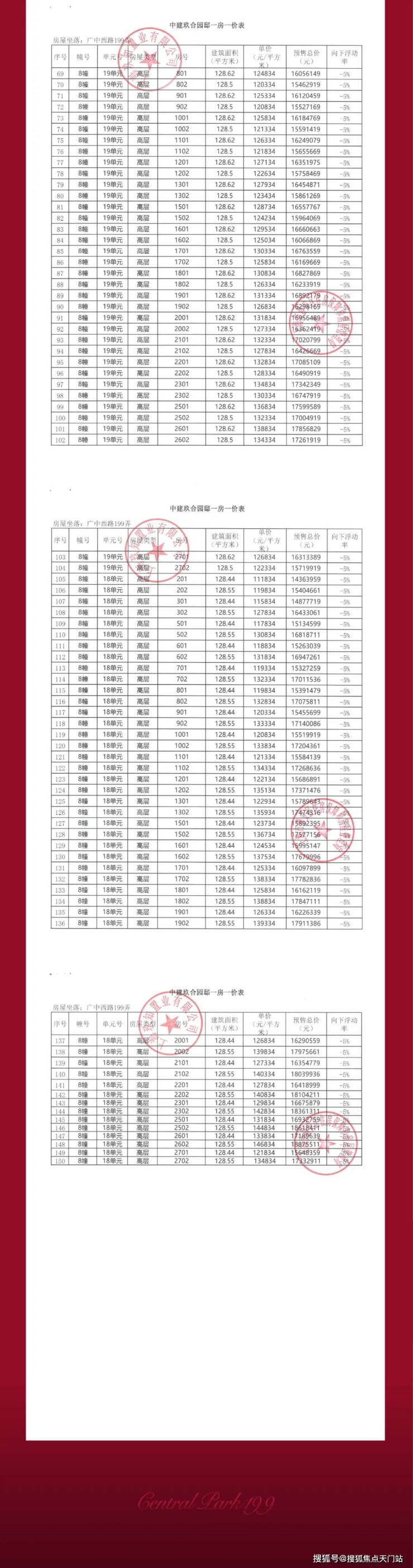 内附一房一价表