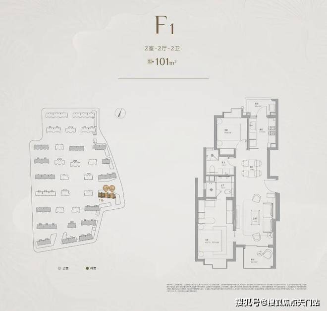 建面约101㎡2房2卫,LDK一体化设计;主卧套房配置步入式衣帽间+独立卫浴;南北双阳台系统,实现270°采光通风。