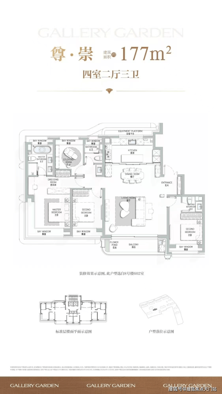 177㎡艺术贵雅奢邸是海上·清和玺压轴力作,延续玺系经典的设计理念和思路,阔朗的四面大开间设计,客厅做到了大横厅设计,延续了曲面流体的阳台,并赠送了独具特色的阳台迷你花园。