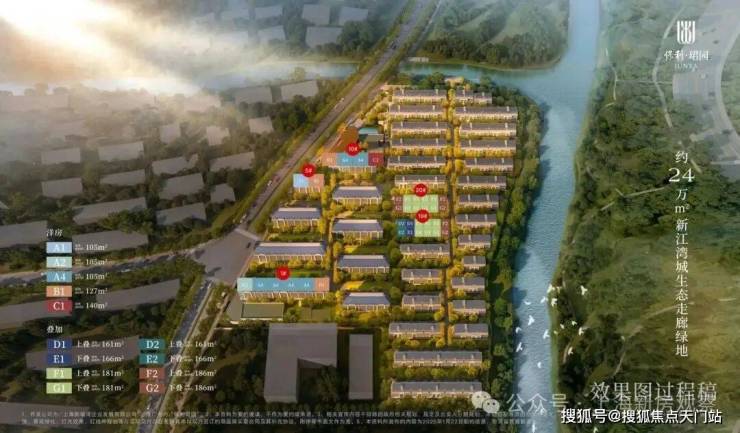 地块本身就处于新江湾城湿地和水系包围之处,从小区的楼栋分布图来看,滨河的基本都是大面积的联排别墅产品,景观应该相当不错。