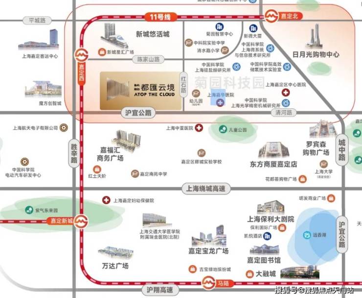 交通方面:项目距离轨道交通11号线嘉定西站直线400米左右,附近还有嘉定客运中心,交通便捷。另外,项目临近沪宜公路、距离沈海高速约1.5公里,上海绕城高速约3.5公里,自驾出行也十分便捷。