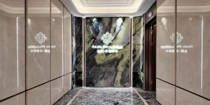 售楼处是未来社区出入的前厅,延续海派腔调,地面是融入玉兰花标志的香格里拉黑石材,墙面用上了稀缺的奥特曼米黄、莫奈花园奢石。