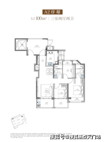 约100㎡A1户型以颠覆性「三阳台」设计,成功实现空间扩容,在功能性与舒适度上全维开拓,诠释「真正适合三代同堂」的百平三房。