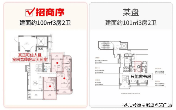 在目前上海大部分新房实得率在78-85%之间的情况下,招商序将实得率做到了近90%,以“小户型”打造“大空间”,一步到位真正满足三代同堂。