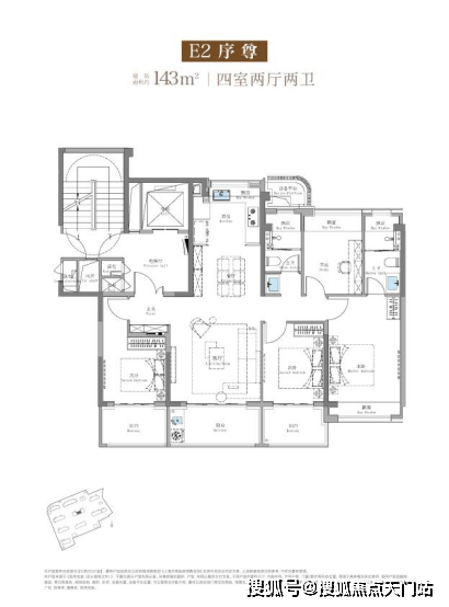 E2约143㎡南厅户型实得率亦达到惊人的92%!该户型格局适合多代同堂或多孩家庭,可兼顾不同年龄段成员的居住需求,均好性强。
