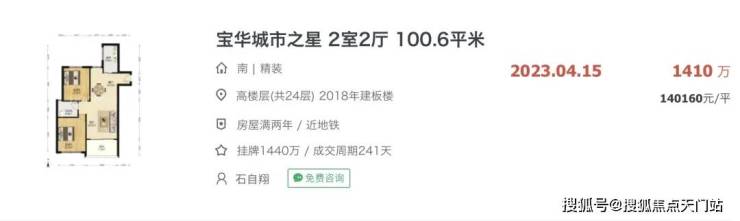 宝华城市之星,是高层住宅小区,房龄大约5年,最新二手成交均价已达14万/㎡。