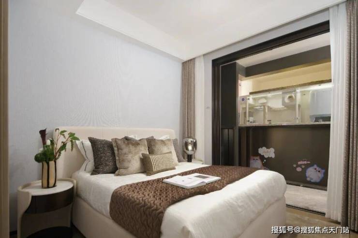 主卧套房设计 ,带卫生间+飘窗,舒适度与私密性兼具。