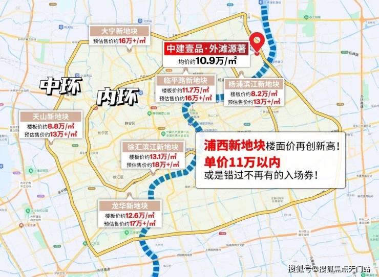 杨浦滨江核心地段项目价格有望突破13万+/㎡,即使离江比较远长白社区项目预计售价也在11.5万+/㎡。