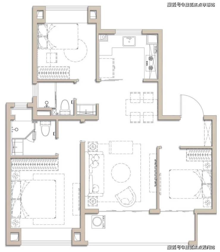细节方面,入户玄关+主卧套房+客卫干湿分离,这个户型几乎做到了一个好户型应该有的所有。