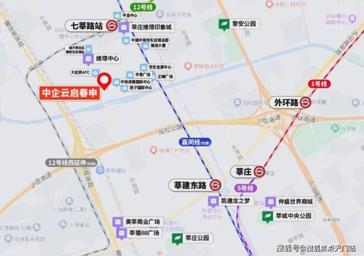 交通方面:项目距离轨道交通12号线七莘路站步行约1(高德地图),已经公示的嘉闵线,未来联通大虹桥枢纽,高铁飞机出行更便捷,并与12号线七莘路站都有站点连接,预计2027年正式通行运营。另外,周边有125路B线、闵行21路、闵行33路、闵行55路等多条公交路线。