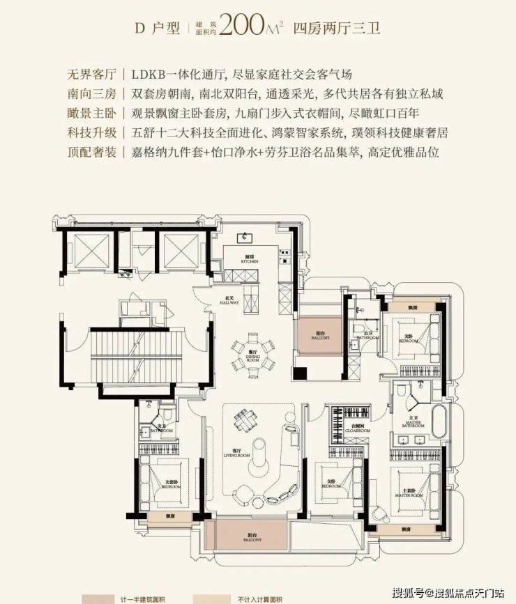 一梯一户、铸铝子母门、华为智能家居 自不必多说,金茂通过 双主卧套房 、 独立家政间 等设计,完美平衡了家庭的团聚需求与个人隐私