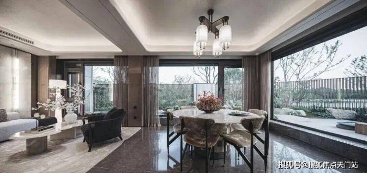 在景观落地窗环绕中,私宴厅以“花廊序列,美学对景”构筑专属的私谧空间,巨型水晶吊灯与浅色饰面的搭配,色彩质感上相得益彰,营造融合艺术、文化与生活美学的奢享感场域,成就令人神往的优雅社交范式。