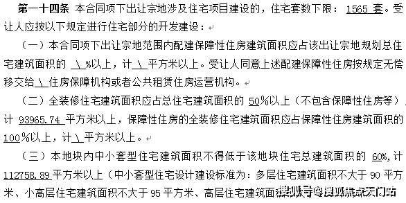 根据项目建设需求: 地块规划住宅下限1565套,地块要求一半全 装修,中小户型比例为60%以上,装修集采标准为2500元/平。