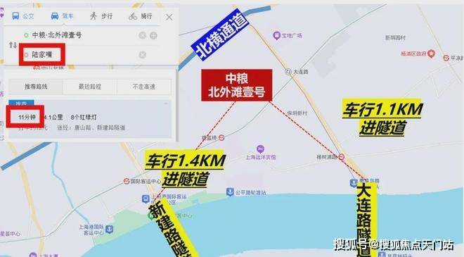 自驾上,项目往北约300米就是北横通道,往南车行约1公里,就是新建路隧道和大连路隧道直达浦东。从项目到陆家嘴、北外滩和外滩都在10分钟左右。